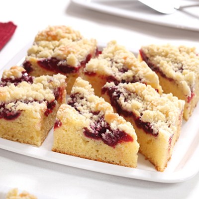 Kompletace výrobku: Hotové těsto rovnoměrně rozetřeme do formy. Trezírovacím sáčkem nastříkáme Frutafill a posypeme drobenkou. Pečeme při 180°C cca 40 min.